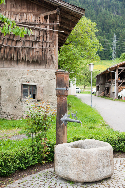 Die Blechziegen befinden sich am Brunnen in Hof. Viele Wanderer haben sich schon nach dem anstrengenden Abstieg von der Hoarlig hier gestärkt.