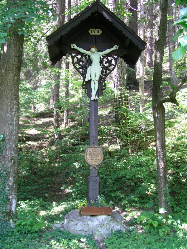 gesuchte Holztafel ist befestigt am "Wannerkreuz". Dieses Wegkreuz