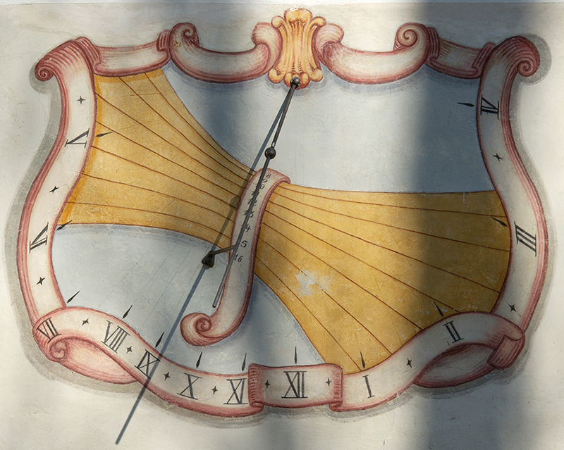 Dass Sonnenuhren mittlerweile nur mehr zum Schmücken von Hauswänden angebracht werden erkennt man daran, dass so manche ihresgleichen an Stellen zu finden ist, wo nie ein Sonnenstrahl hingelangt.