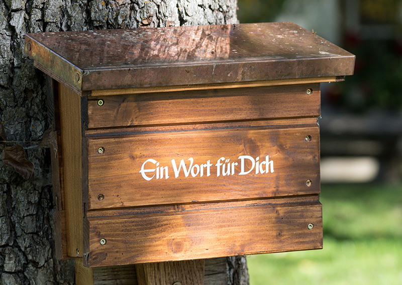 Ein nicht ganz alltägliches Aussehen hat der hier gezeigte Briefkasten. „Ein Wort für Dich“ - ein kurzer Satz mit tiefer Bedeutung. Werbebroschüren sind hier fehl am Platz. Hier hofft und wartet man noch auf einen persönlichen Gruß.