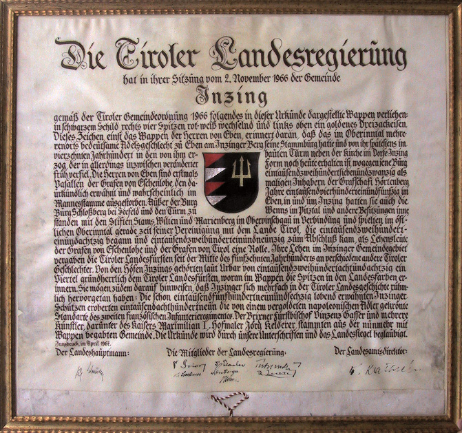 Landesregierung der Gemeinde Inzing in einer Urkunde